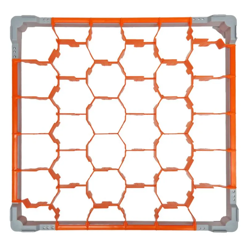 Der Gläserkorb ist modular aufgebaut und kann einfach an geänderte Anforderungen angepasst werden, indem Eckverbindungen, Rahmen, Zwischenrahmen oder Fachungen ausgetauscht werden. Dadurch kann die Glashöhe oder Gläserkapazität je nach Bedarf angepasst werden. Falls Sie diese Teile benötigen, können Sie diese separat bei uns erwerben. Bei Fragen stehen wir Ihnen gerne zur Verfügung. Dieses Gläserrack besteht aus langlebigem, strapazierfähigem und lebensmittelechtem PP-Polypropylen-Kunststoff. Polypropylen ist frei von hormonell wirksamen Substanzen wie BPA und enthält keine Weichmacher wie Phthalate.